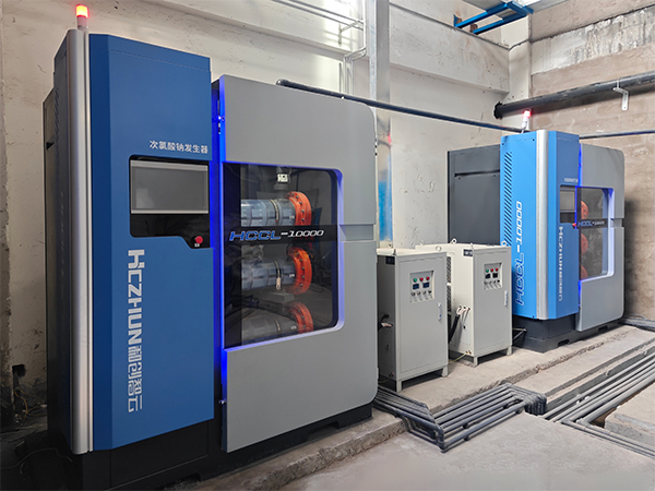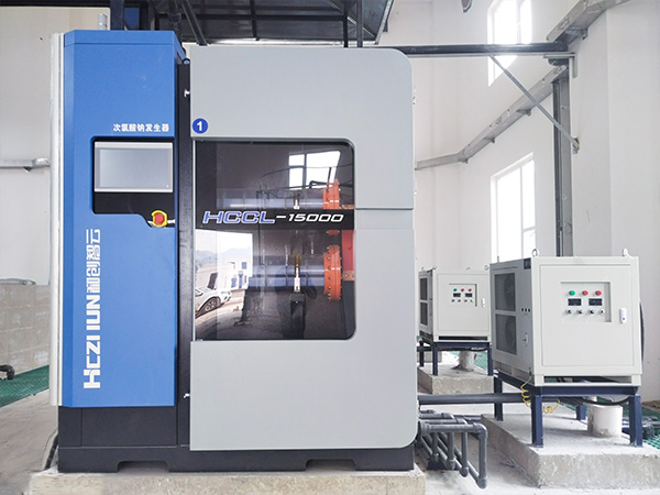 采用無隔膜電解法電解稀鹽水,在線制備低濃度次氯酸鈉溶液的裝置。具有原料易得、產(chǎn)物純凈、安全可靠的特點(diǎn)。適用于各類氯化消毒水處理。